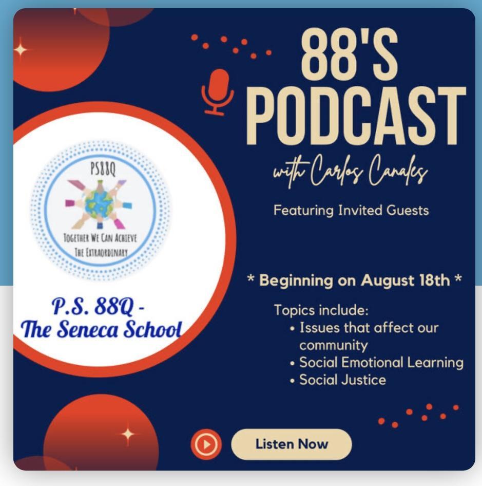 Listen in on our next podcast! Mr. Canales interviews Mrs. Linda O'Shaughnessy, the Principal of PS 88Q, The Seneca School!